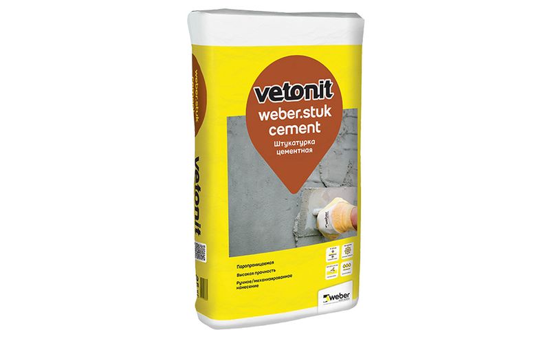 Цементная декоративная штукатурка weber.stuk cement для выравнивание поверхностей слоем от 5 до 30 (50) мм.