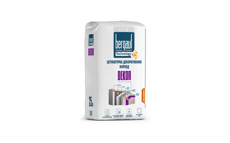 Штукатурка декоративная Bergauf Decor используется под покраску. Подходит для следующих типов основания: гипсокартон, бетон, железобетон, ячеистый бетон, цементная, цементно-известковая штукатурка. Для внутренних работ в помещениях с нормальной и повышенной влажностью и для наружных работ.